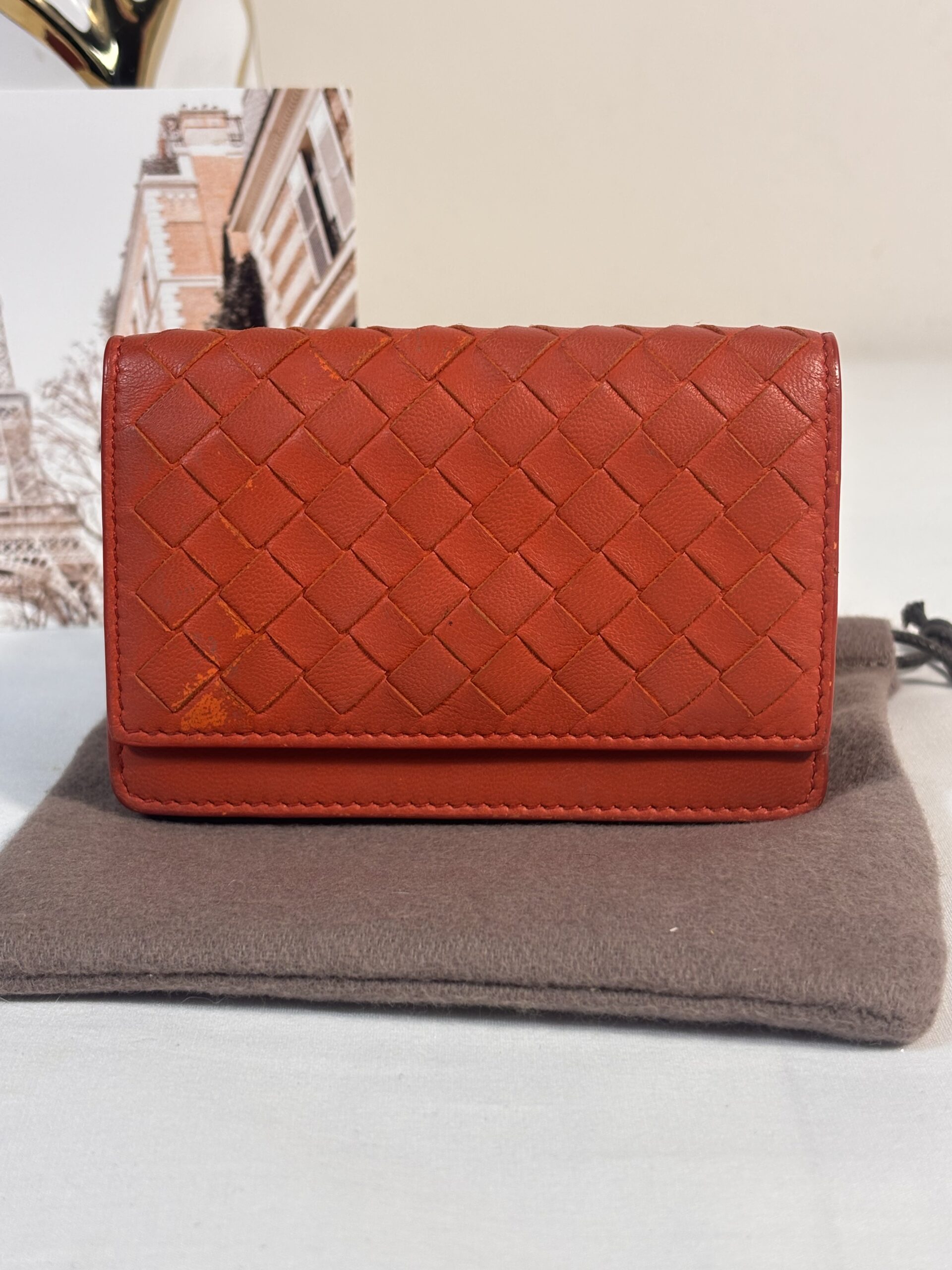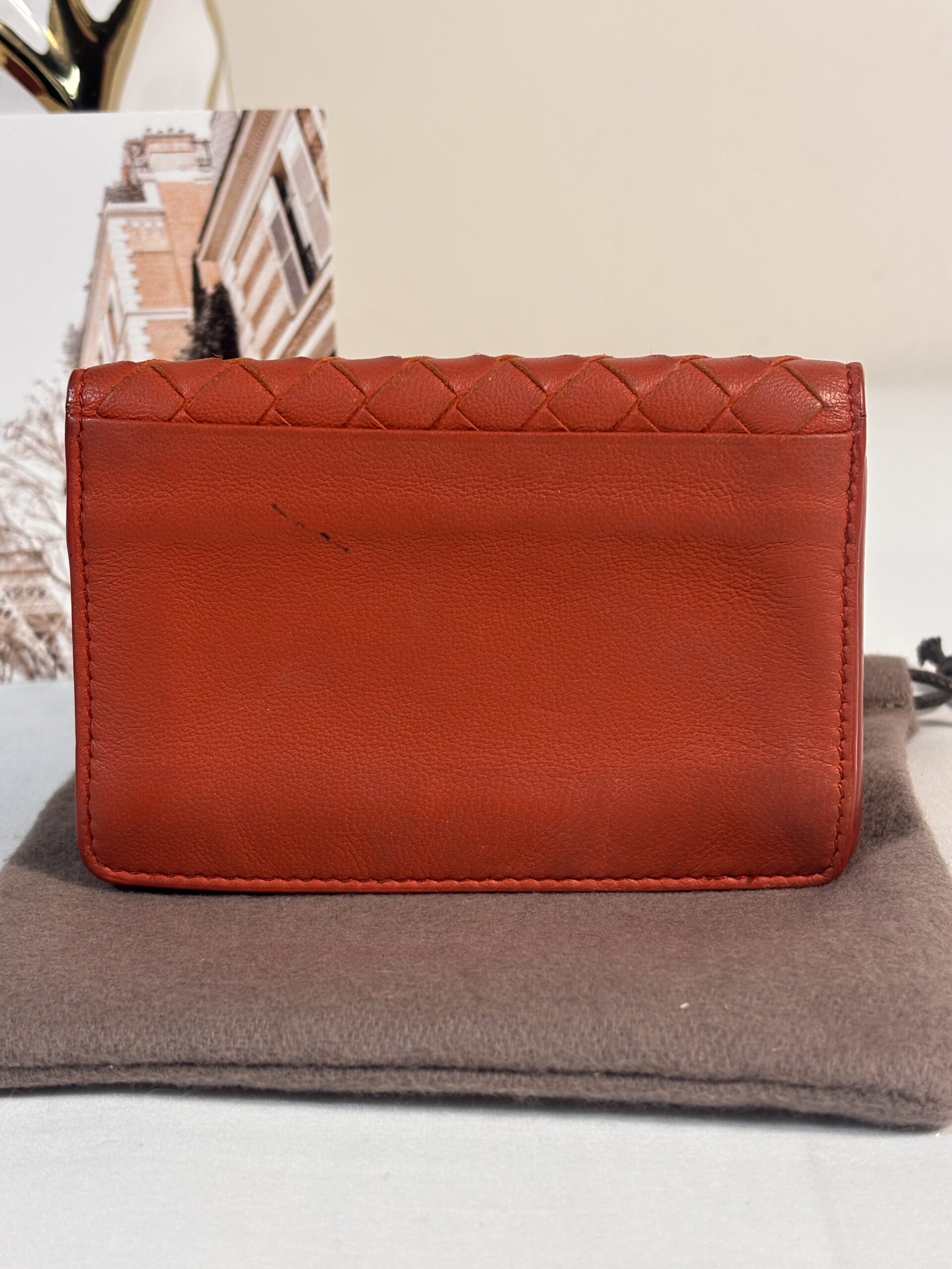 Bottega Venetia Orange Intrecciato Leather Card Holder