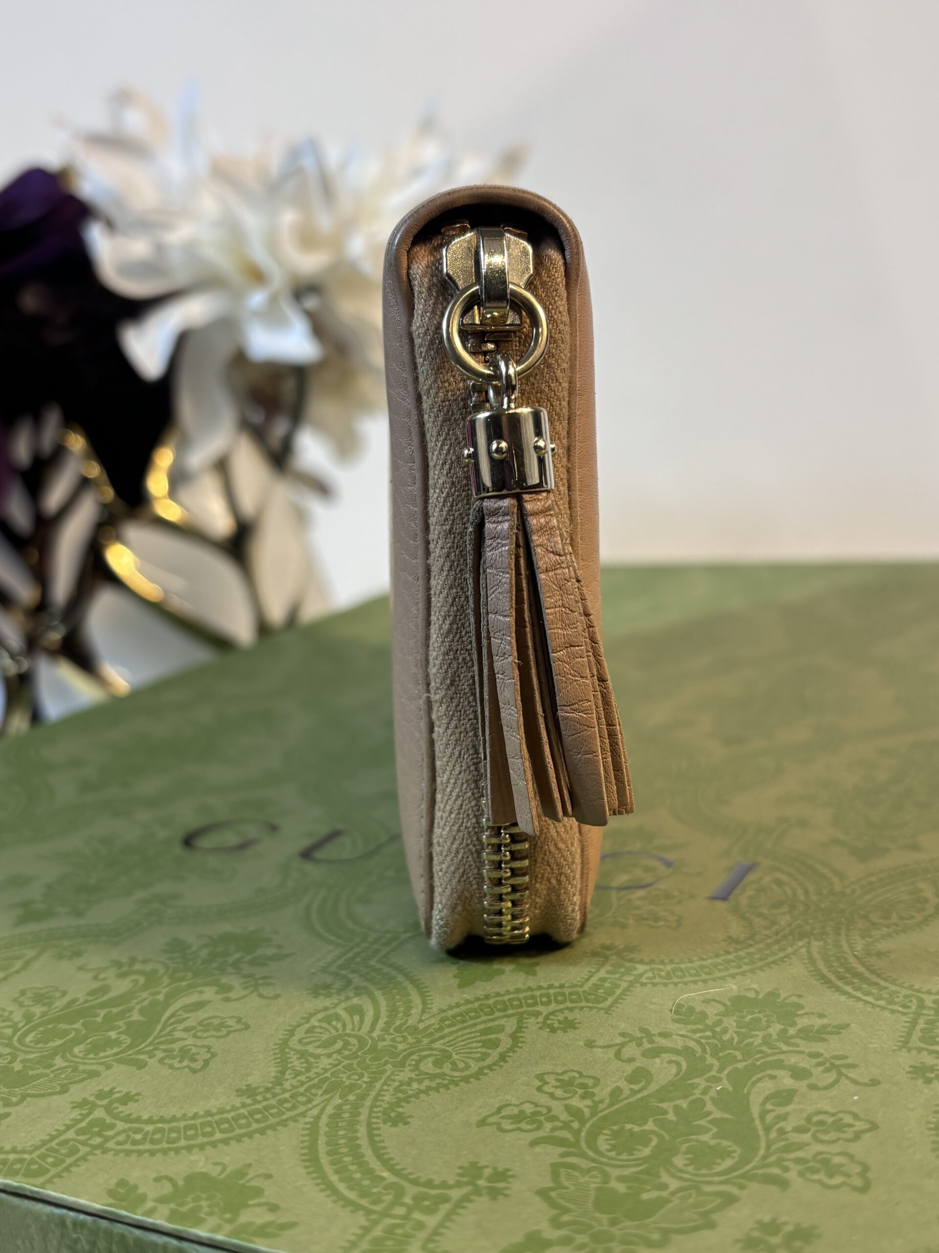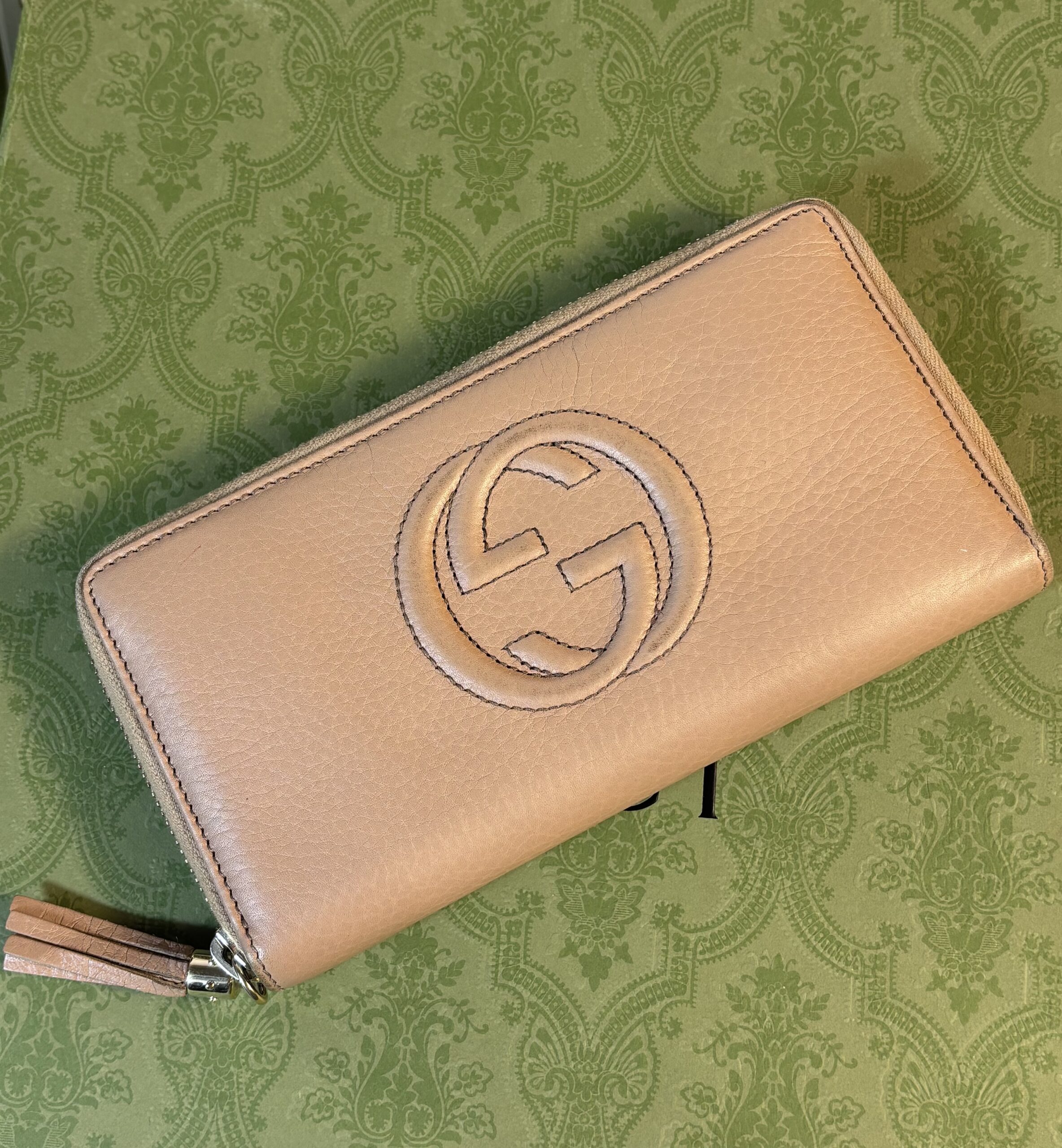 Gucci Beige Soho Tassel Zip Wallet