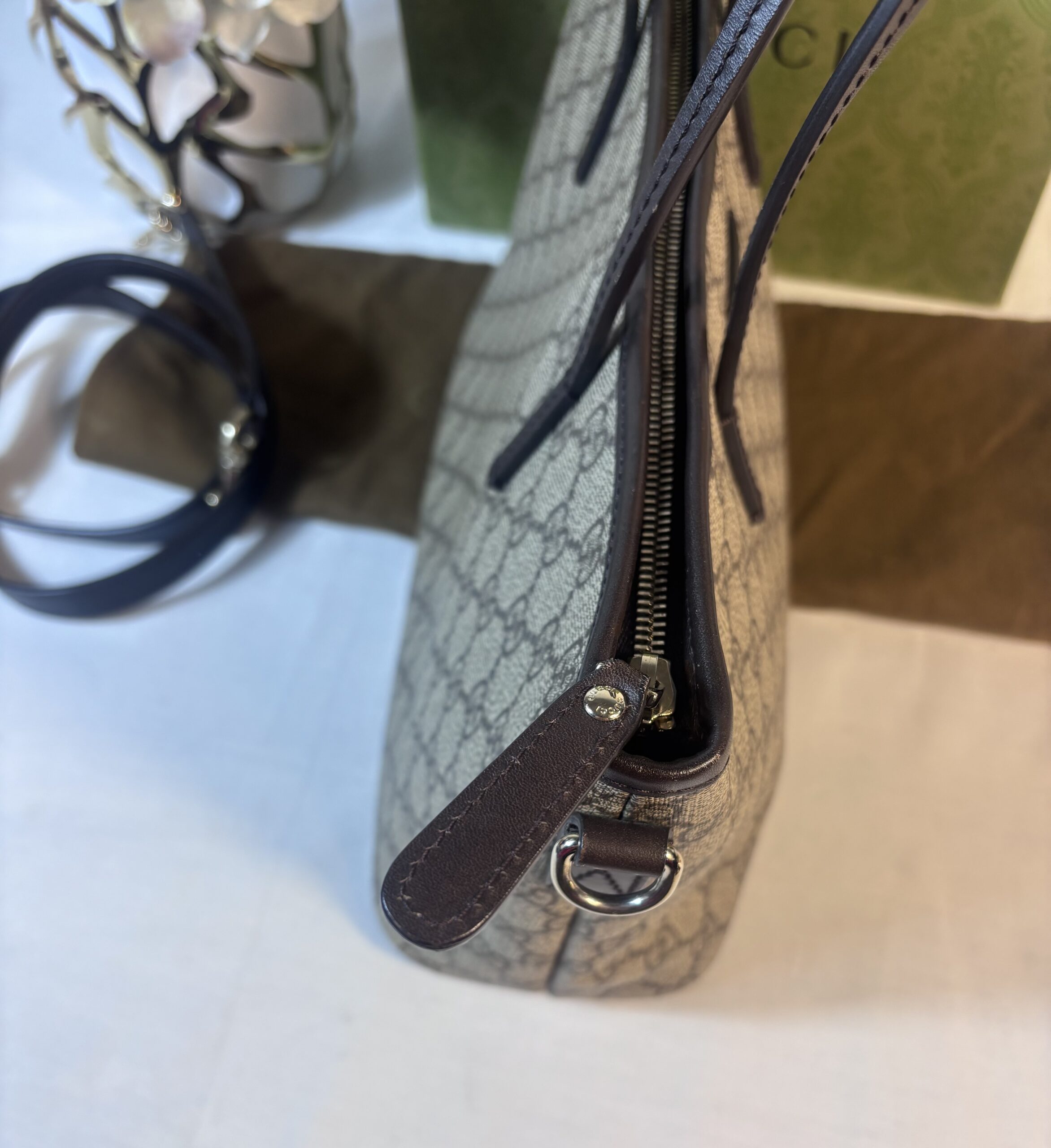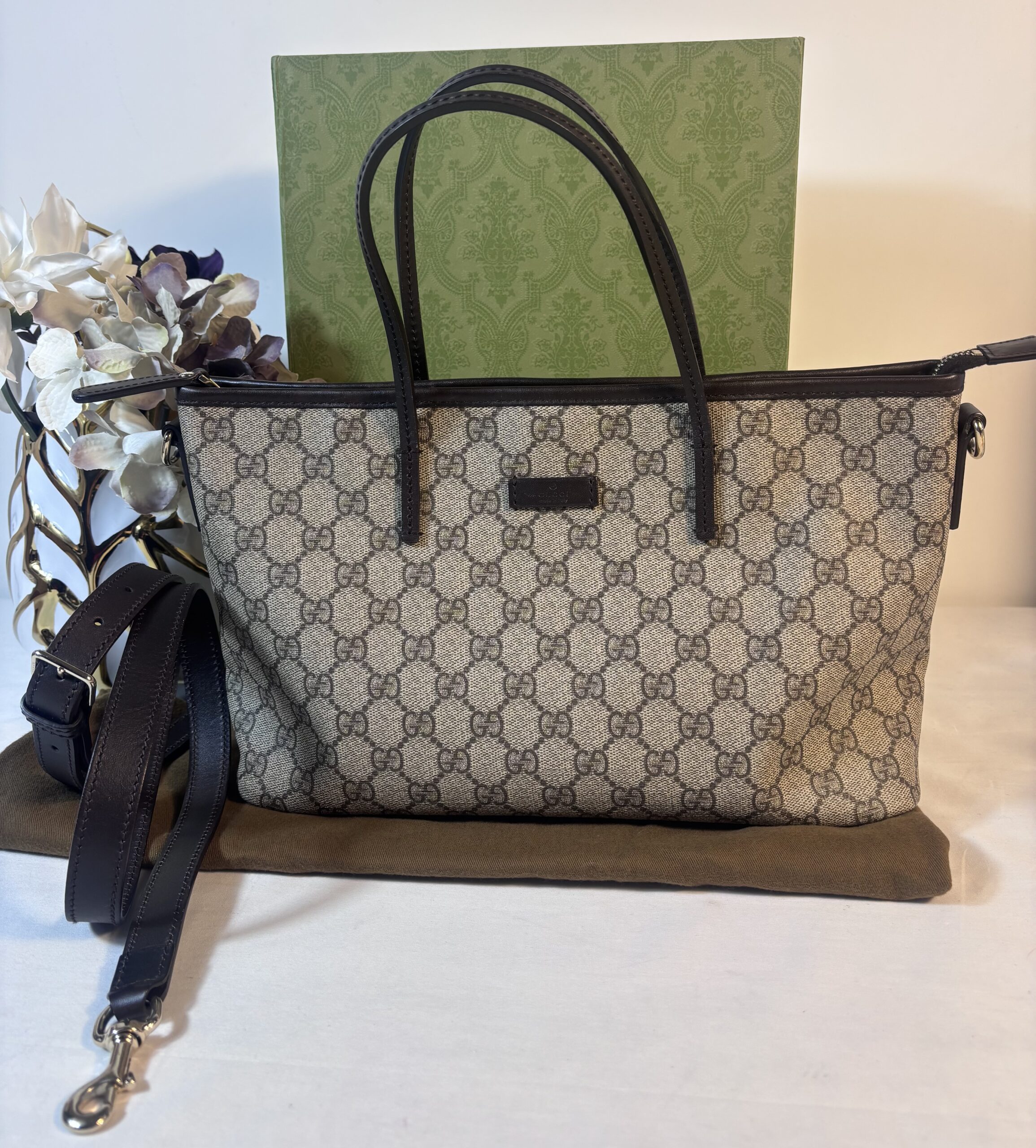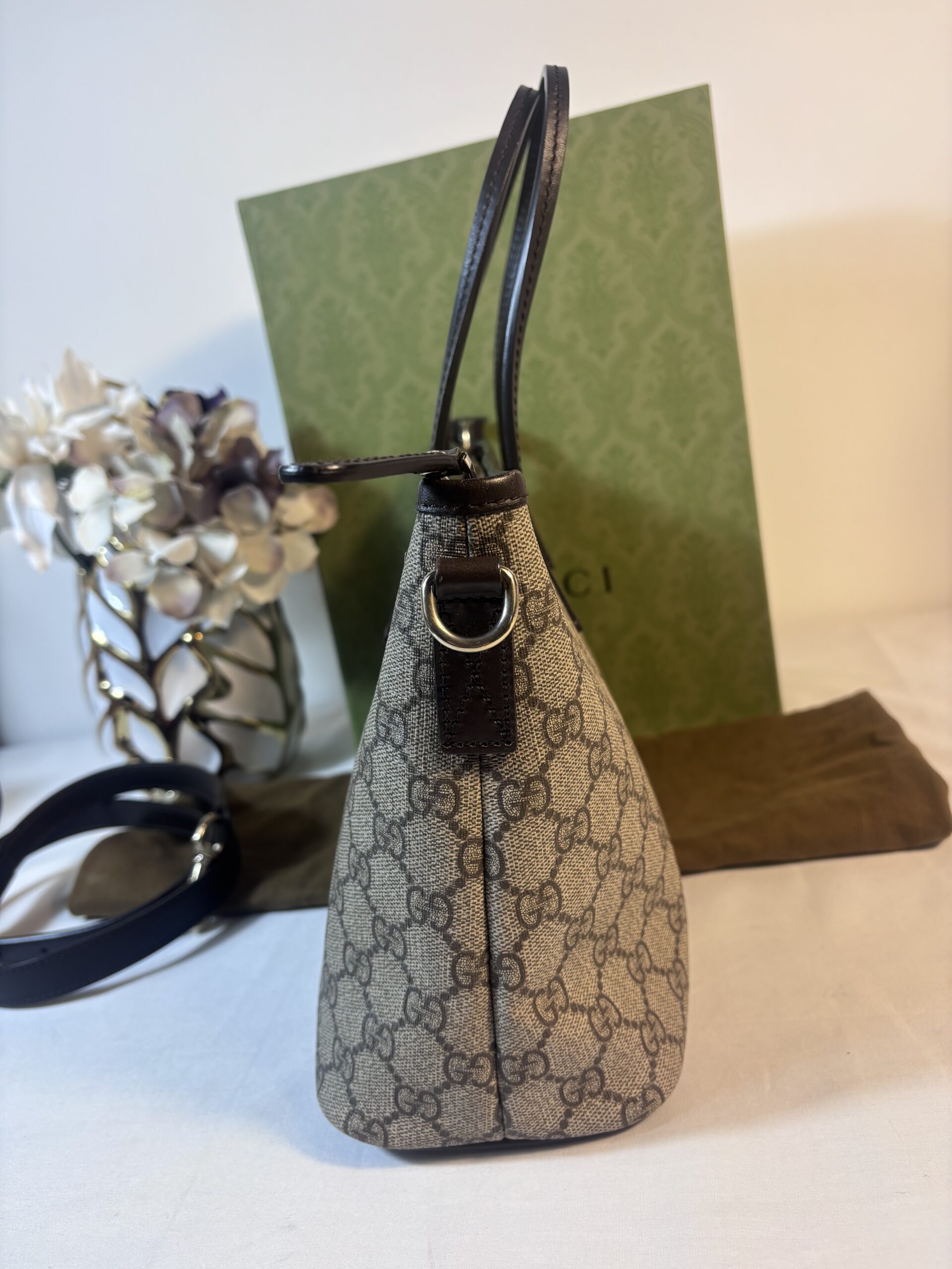 Includes dust bag and strap