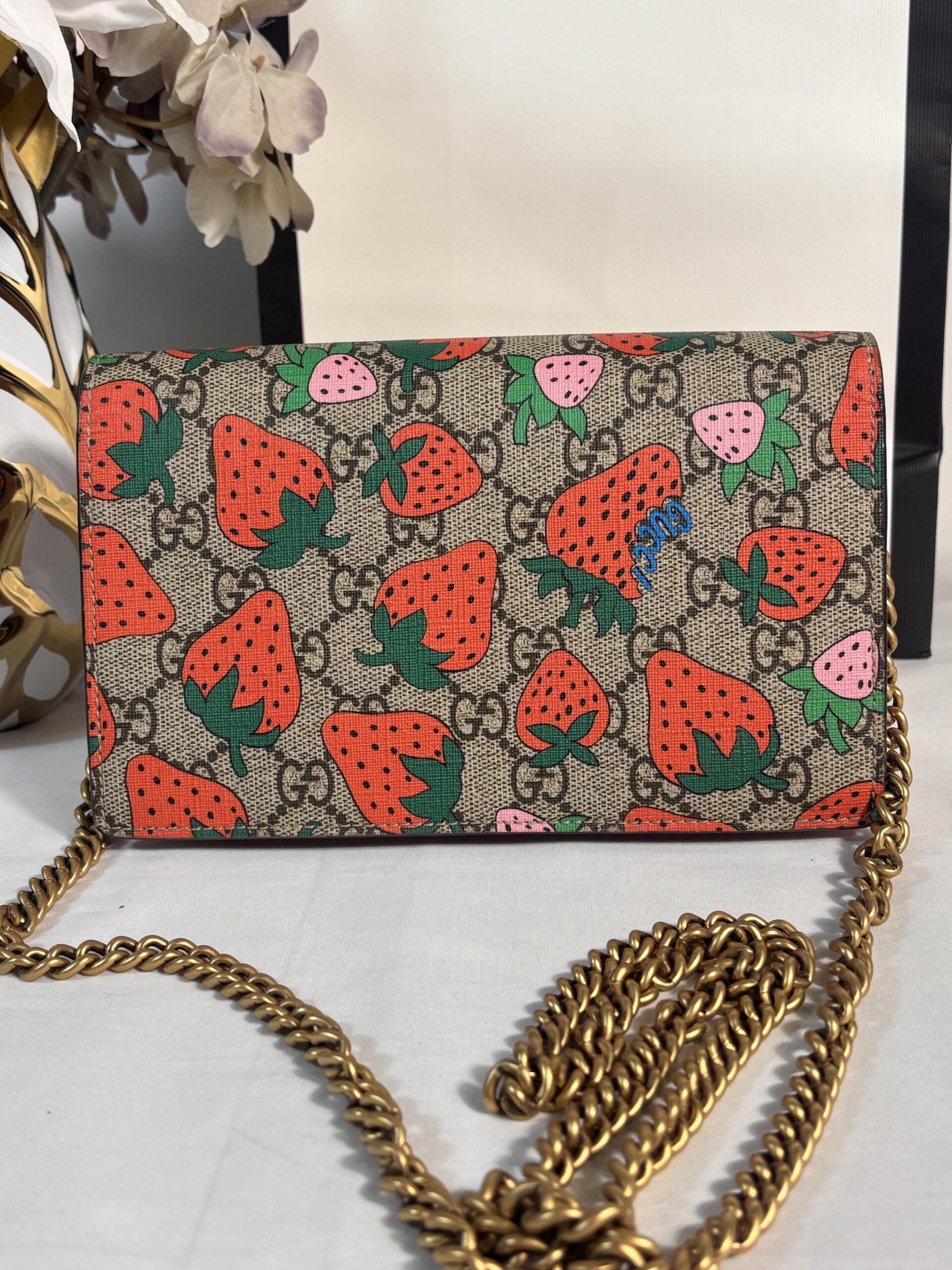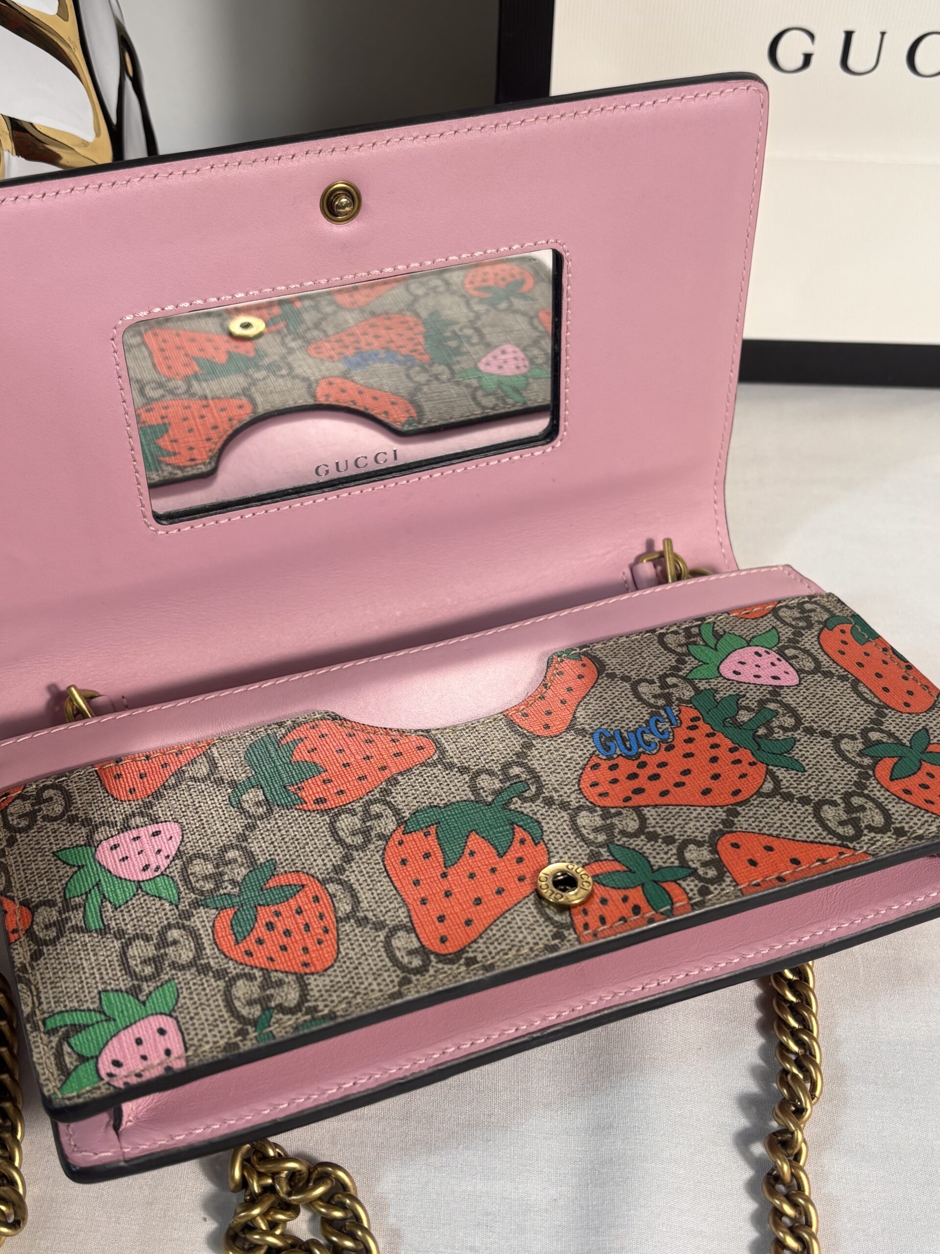 Gucci Supreme Strawberry Wallet On Chain