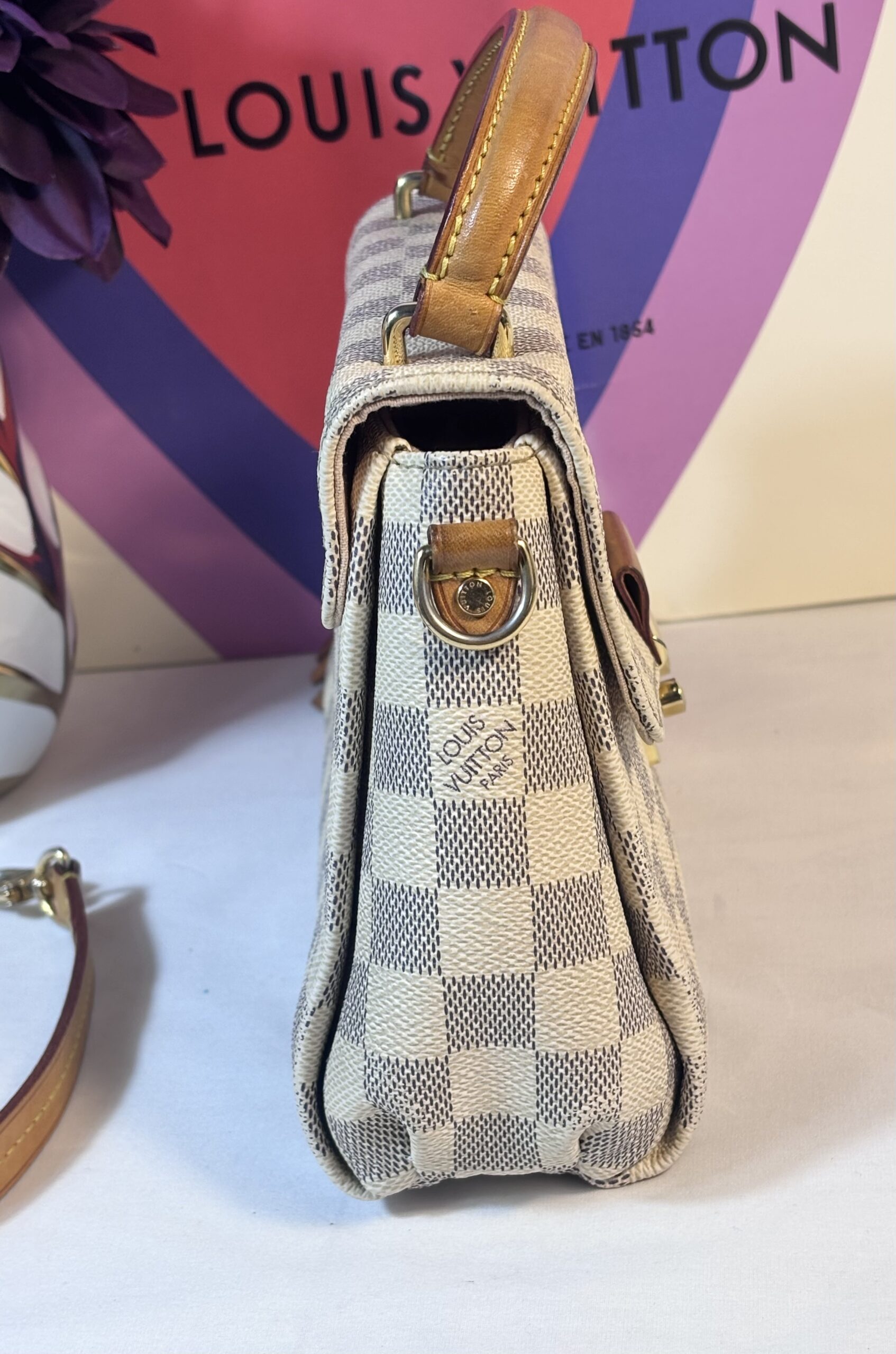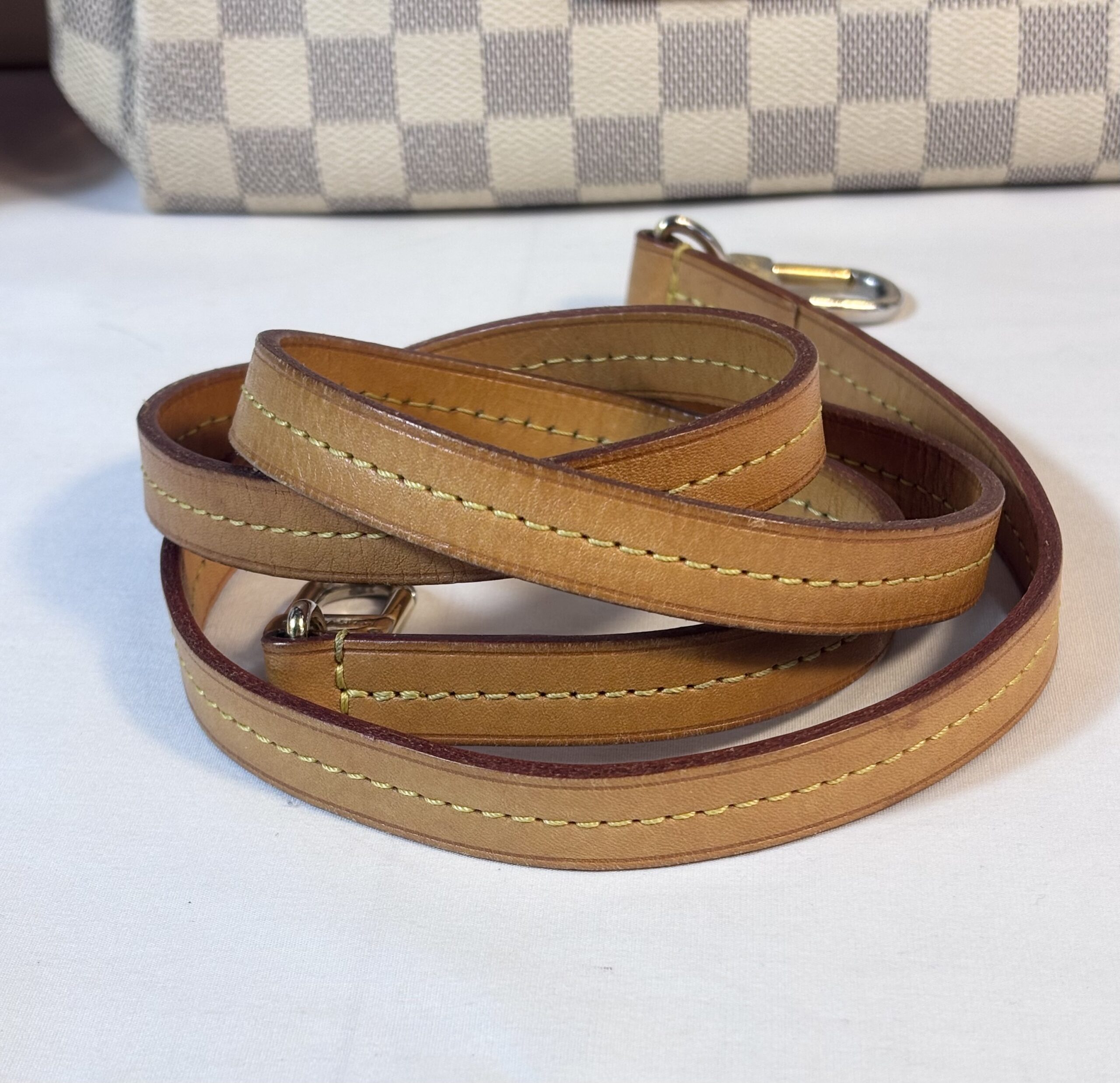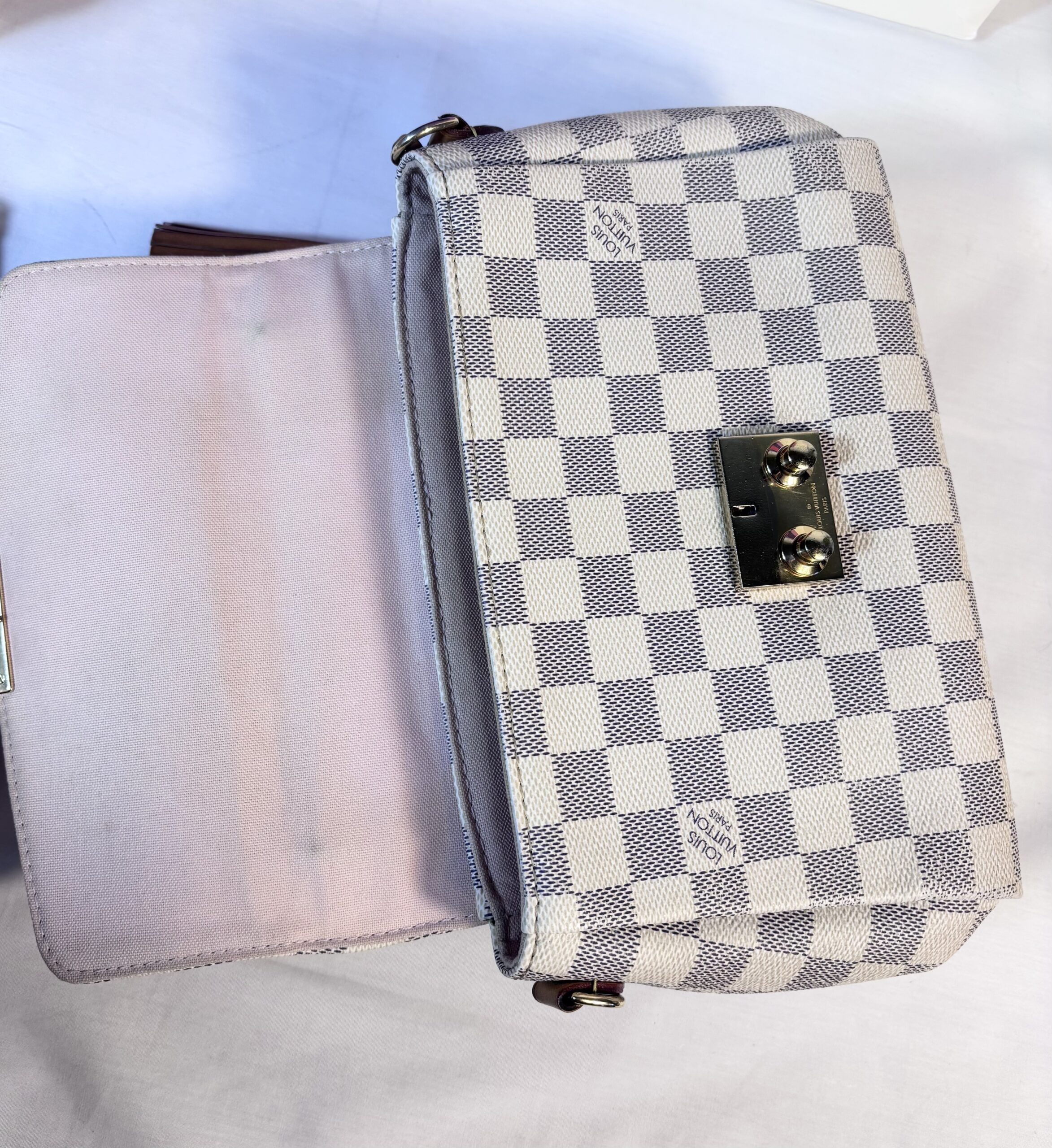 Includes dust bag, tassel, and strap