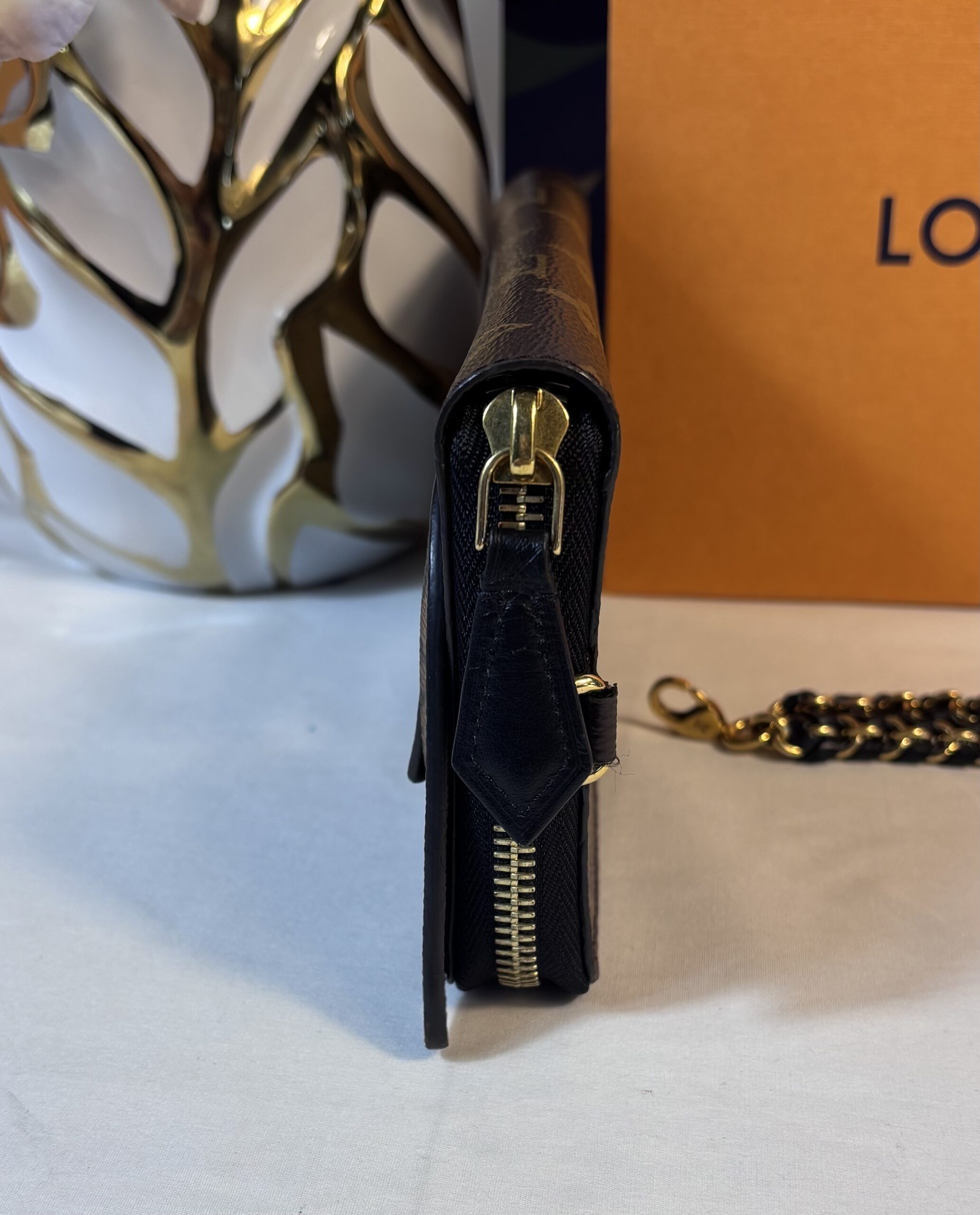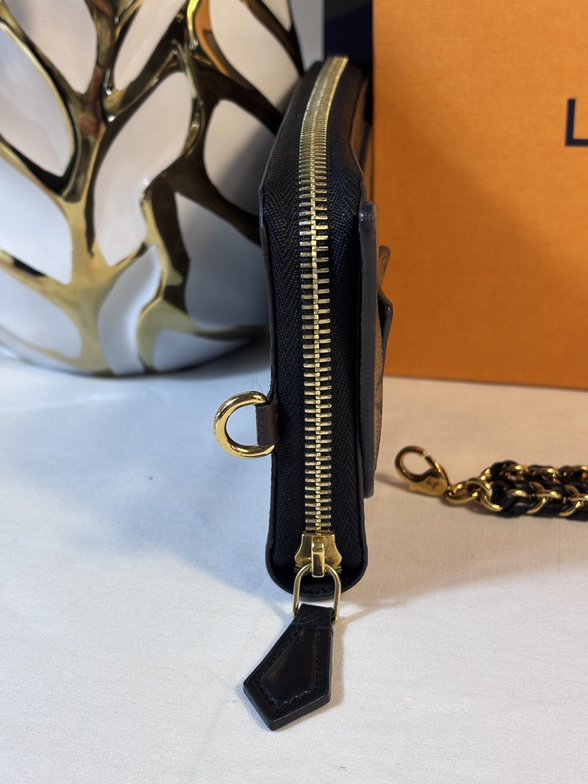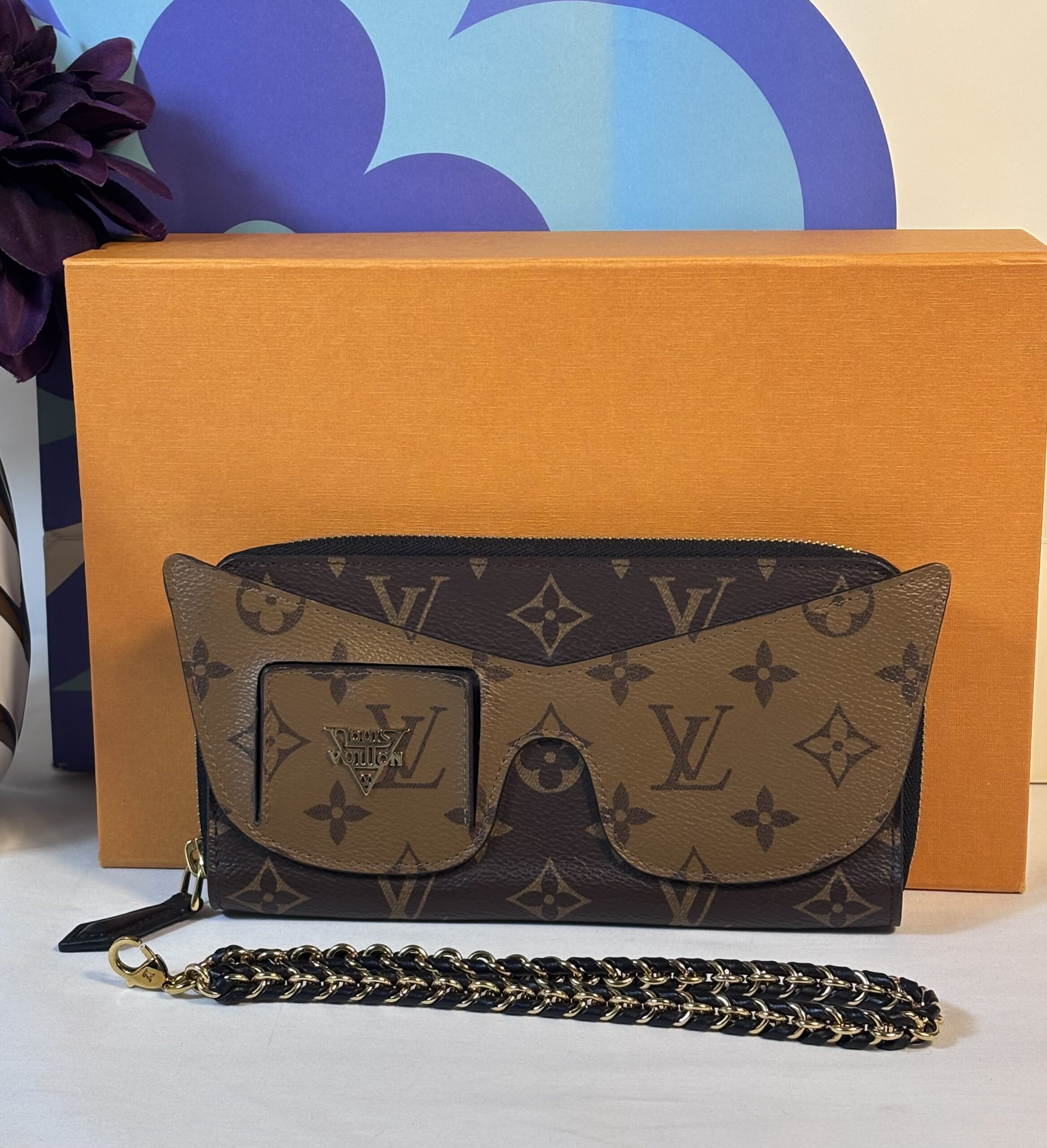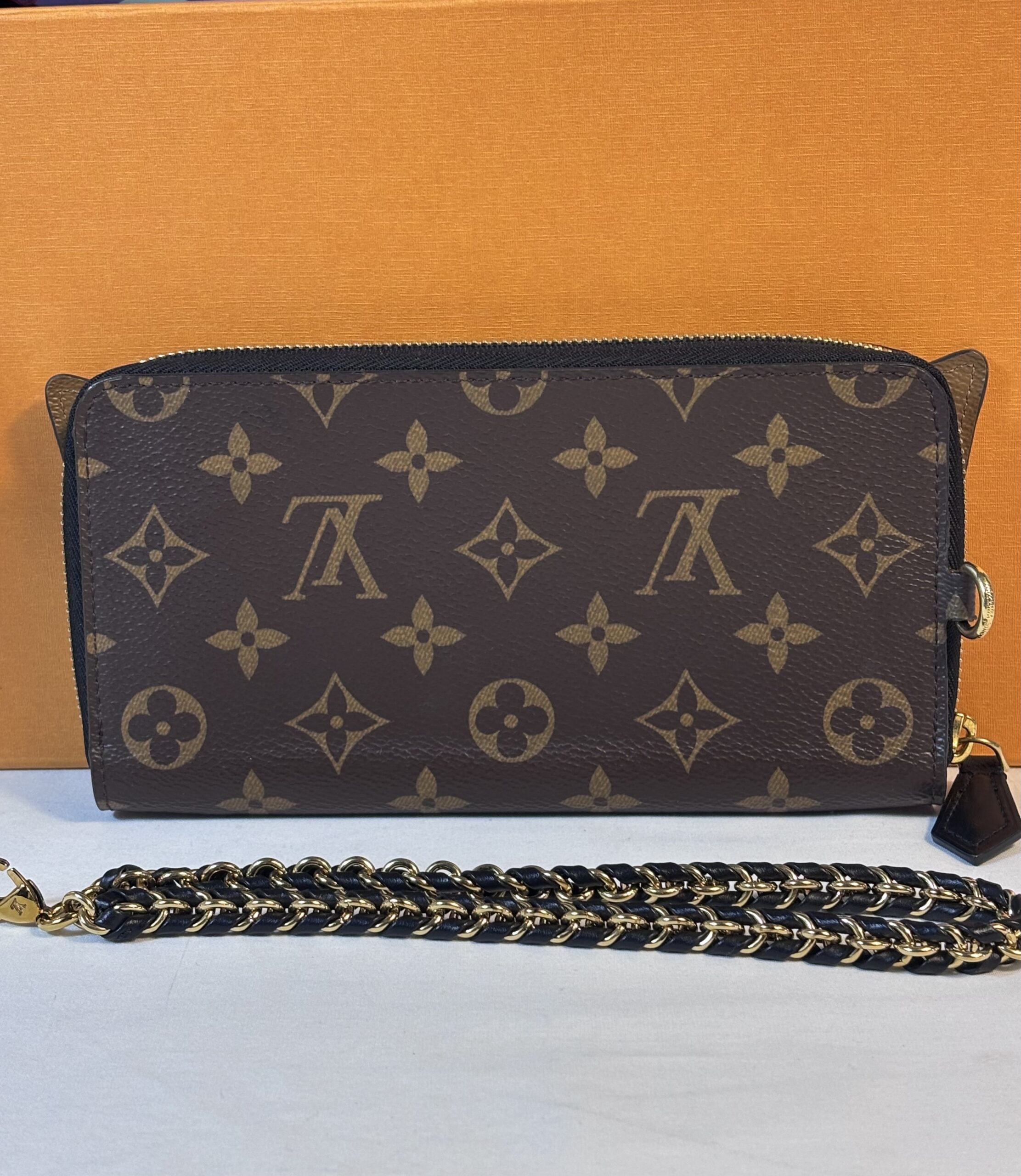 Includes box and wristlet chain