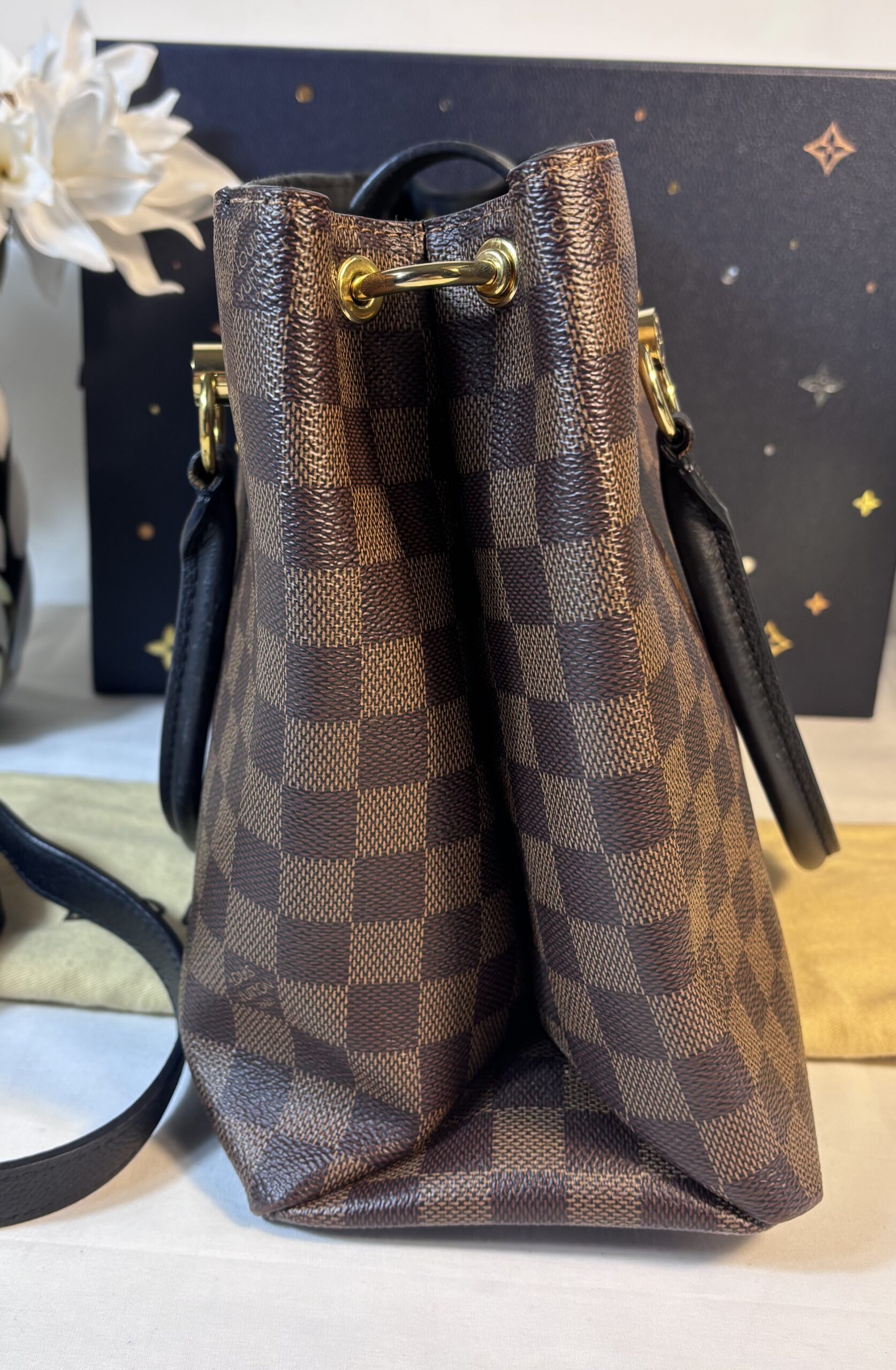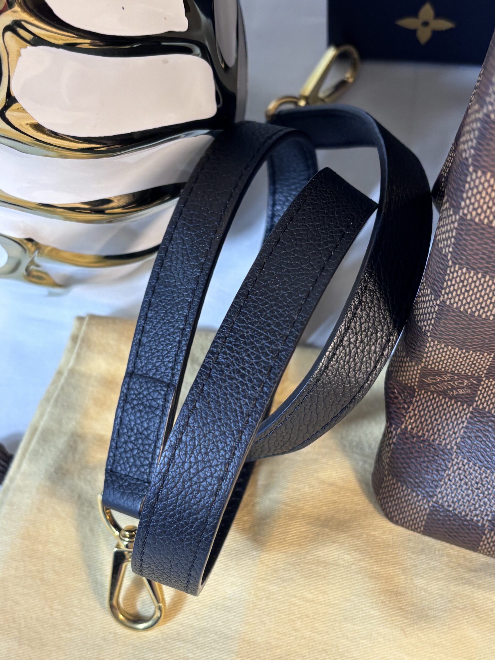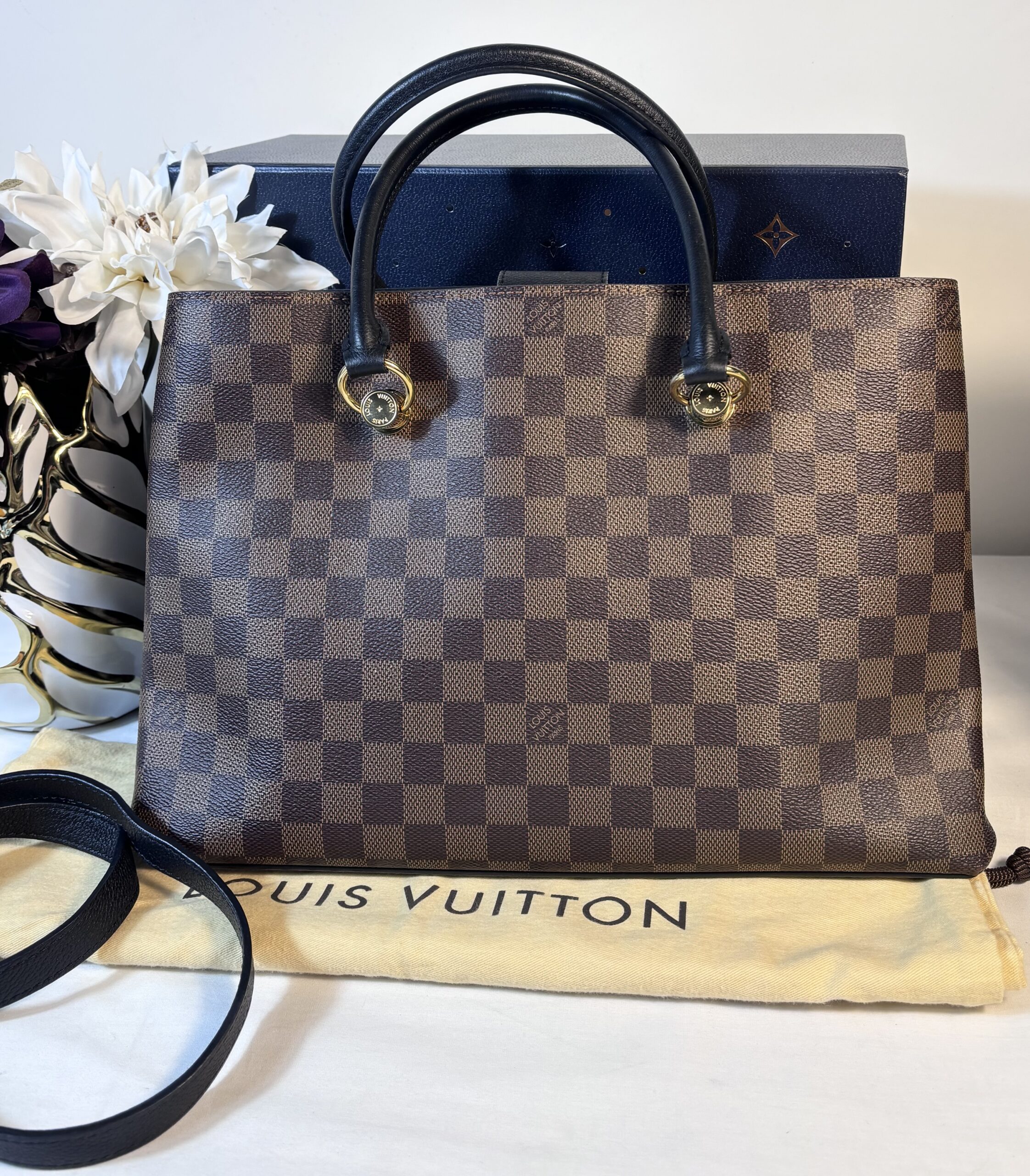 Includes dust bag and strap
