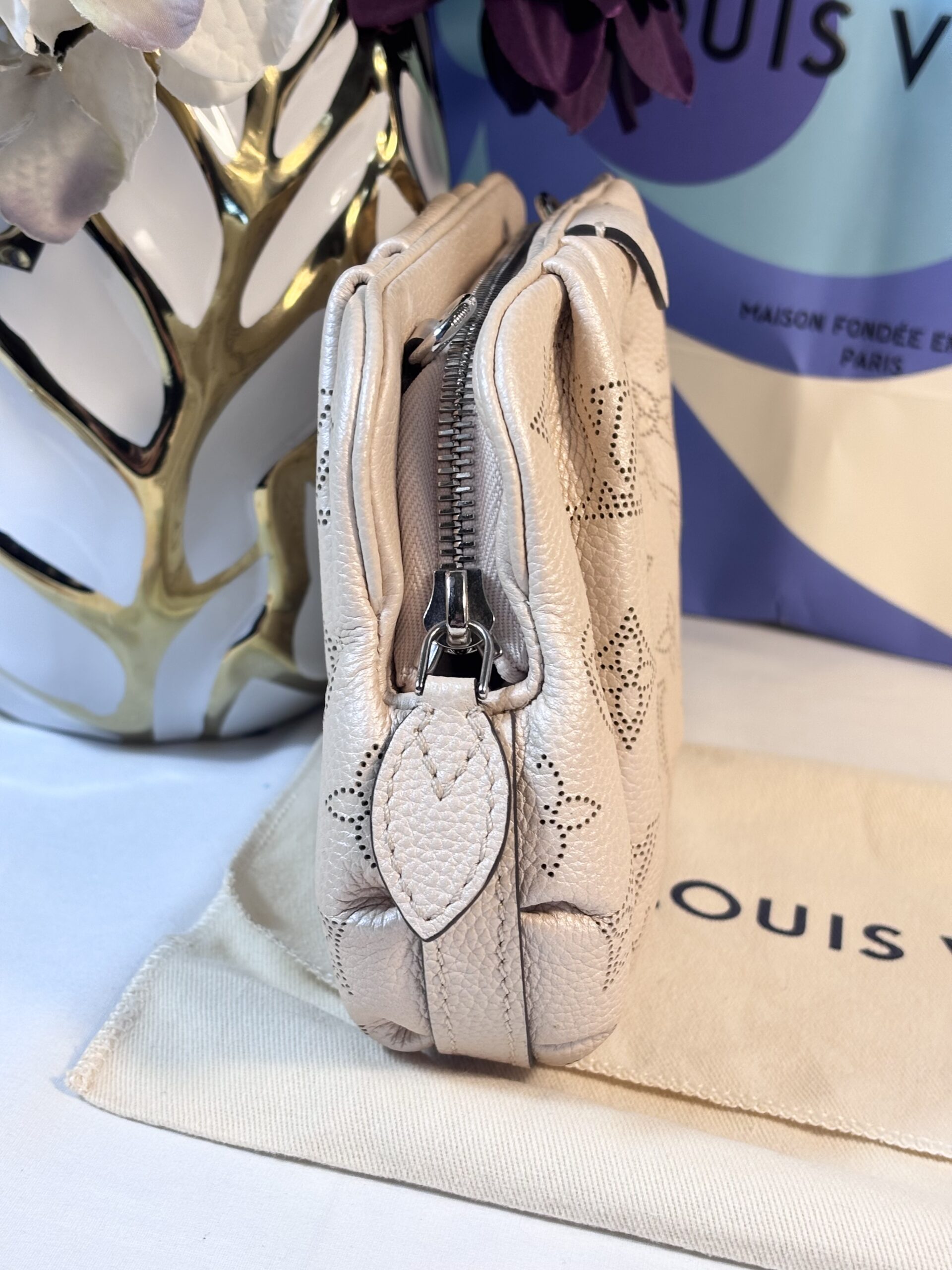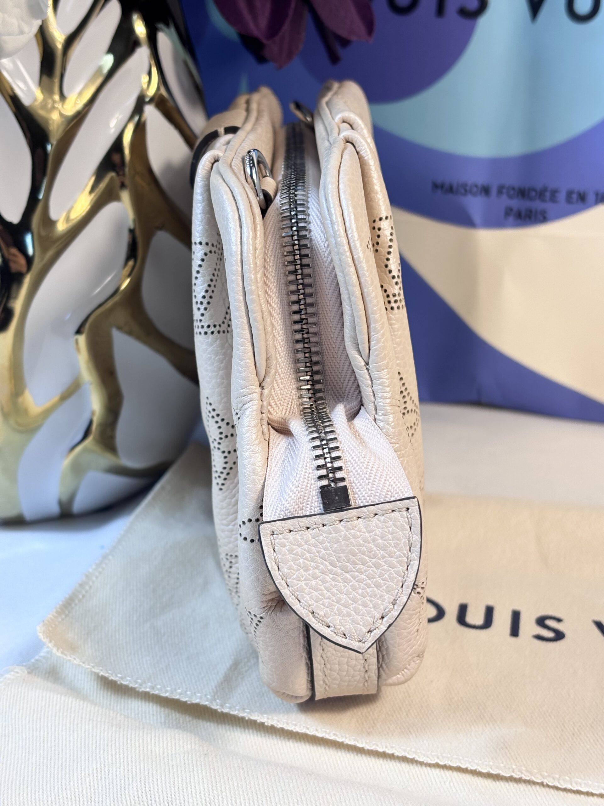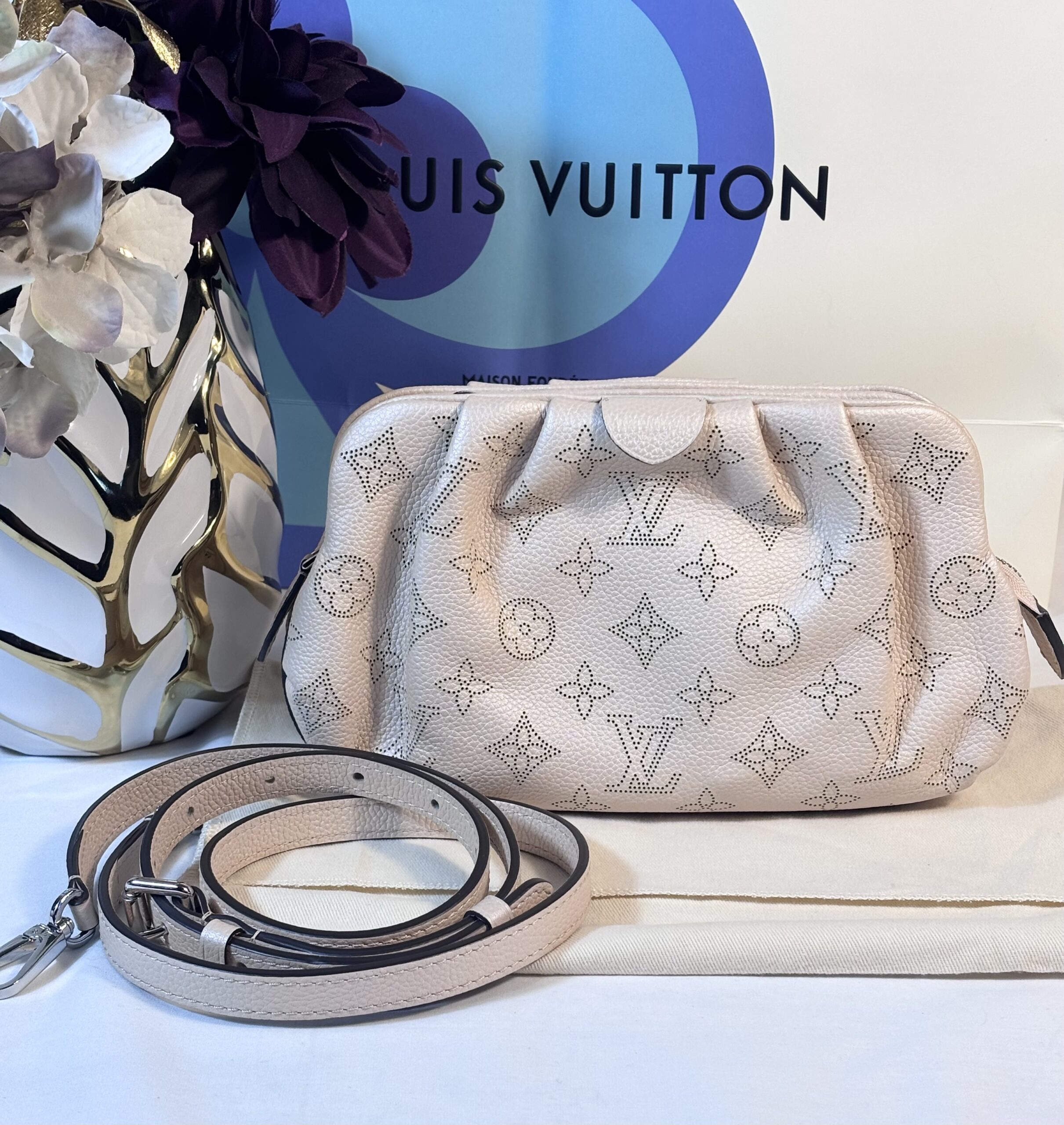 Includes dust bag and strap